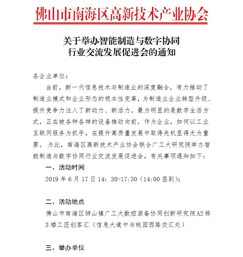 关于举办智能制造与数字协同行业交流发展促进会的通知