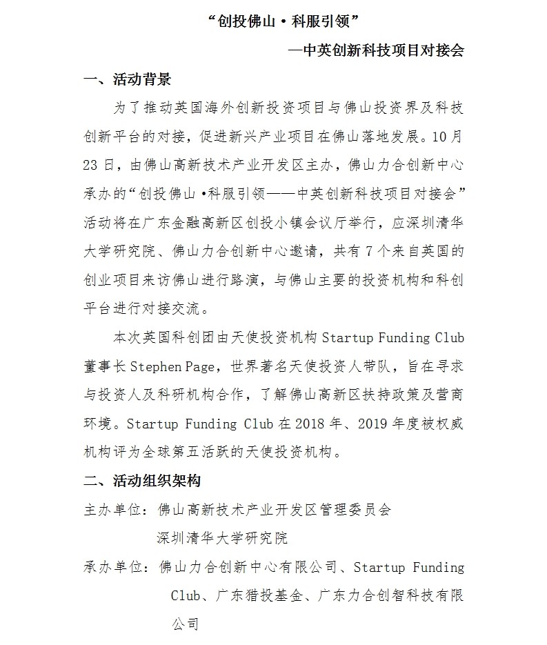 “创投佛山·科服引领” —中英创新科技项目对接会