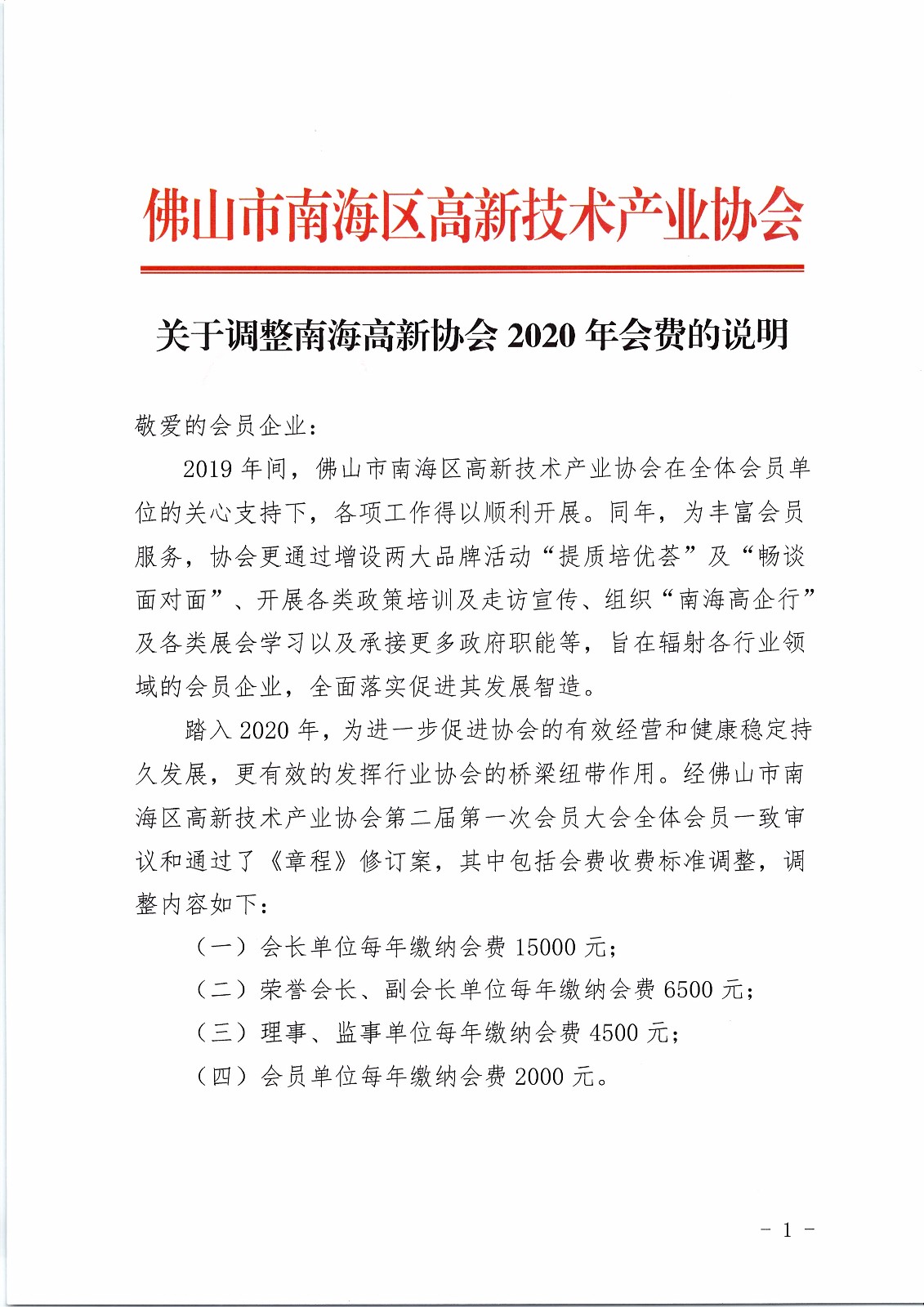 关于调整佛山市南海区高新技术产业协会2020年会费的说明