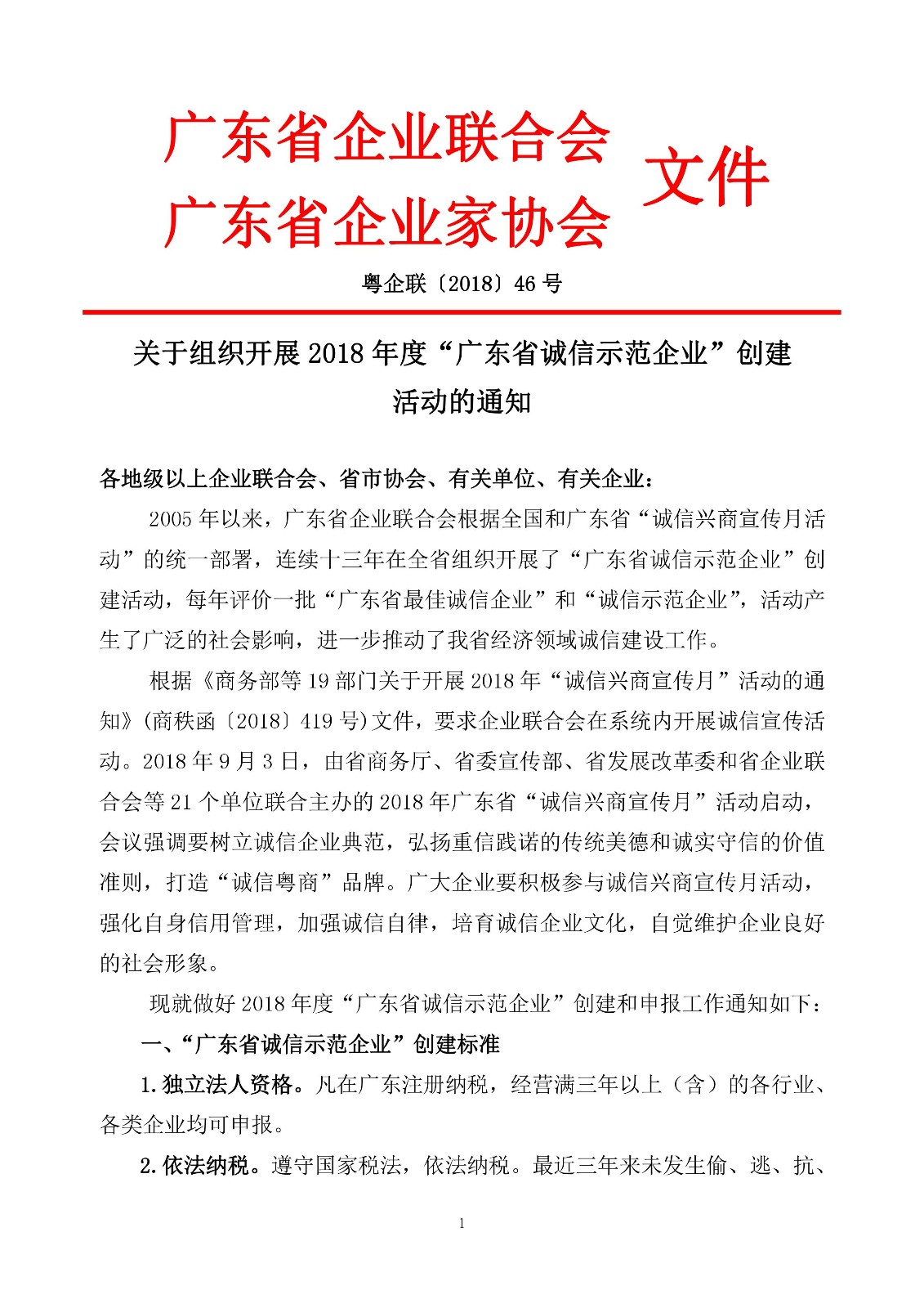 关于组织开展2018年度“广东省诚信示范企业”创建 活动的通知
