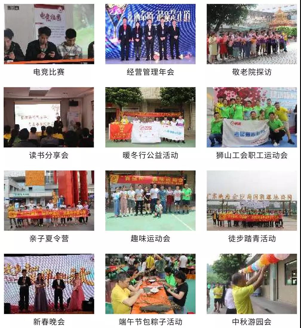 吉星工会共设爱心社团、微电影社团、飞歌社团、篮球社团、骑行社团、电竞社团、羽毛球社团和一支志愿服务队。各大社团充分发挥积极作用,定期组织文体康乐活动和社会公益活动,丰富员工的业余文化生活,增强归属感和认同感。