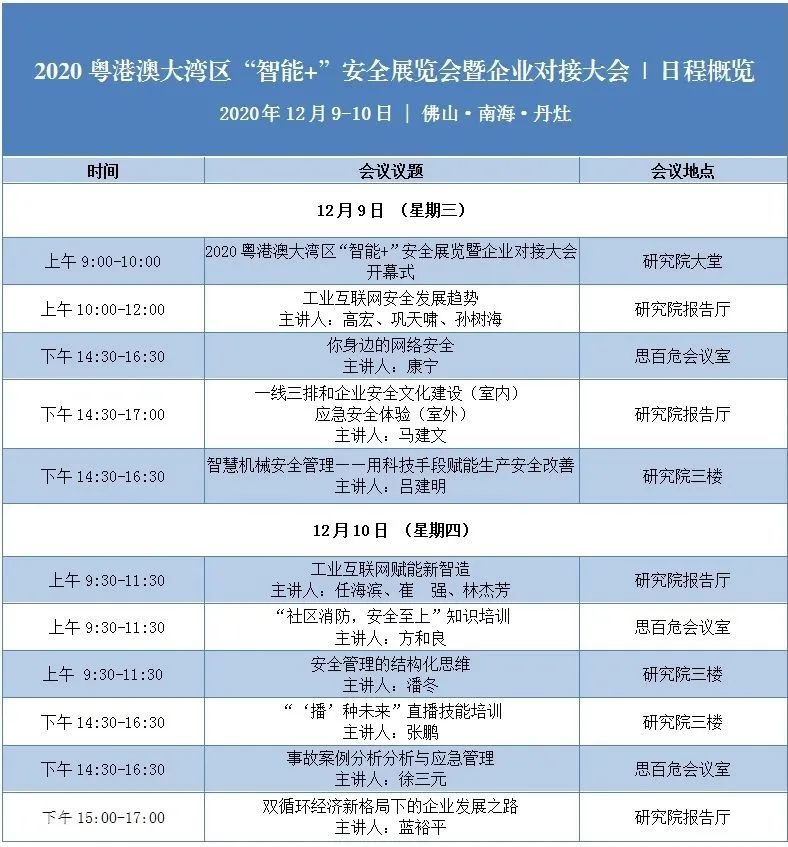 为促进安全产业生态的信息互通、资源互动,进一步推动南海区安全产业高质量发展,提高智能安全产业凝聚力,定于2020年12月在广东佛山市南海区丹灶镇举办2020粤港澳大湾区“ 智能+"安全展览暨企业交流活动,促进南海“两高四新”产业发展,为企业提供一个产业融合、供需对接平台 。