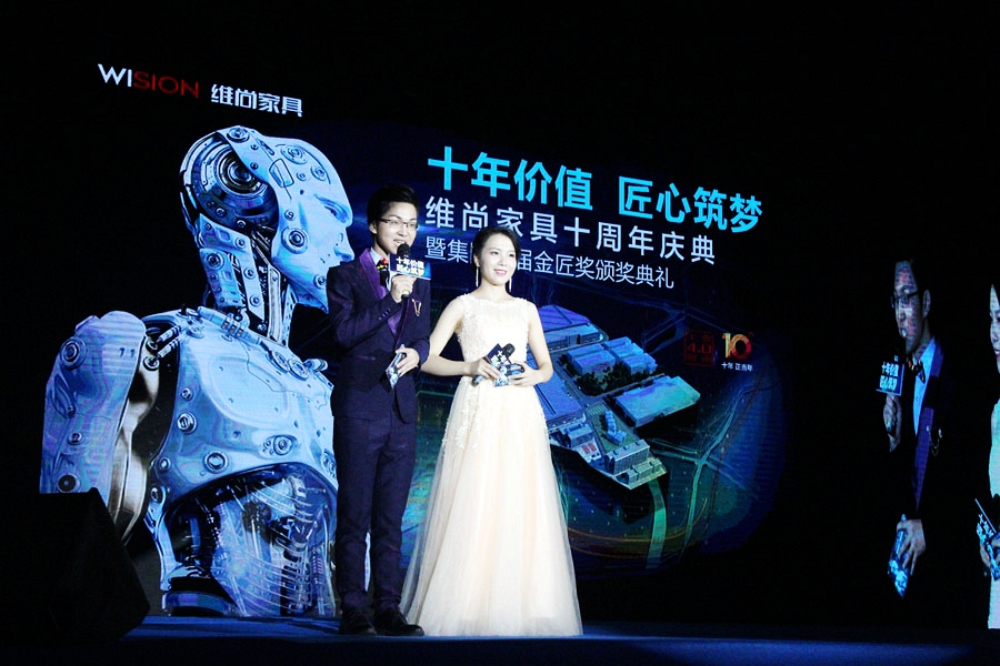 2016年9月20日晚,以“十年价值、匠心筑梦”为主题,维尚家具十周年庆典暨首届集团金匠奖颁奖典礼在五厂举行。集团及公司领导、五大厂区员工代表逾1000人共聚一堂,见证首届集团“金匠奖”得主、维尚“最具价值贡献员工”的诞生,祝贺维尚家具成立十周年,共谋维尚“成就你我家居梦想”的美好明天。