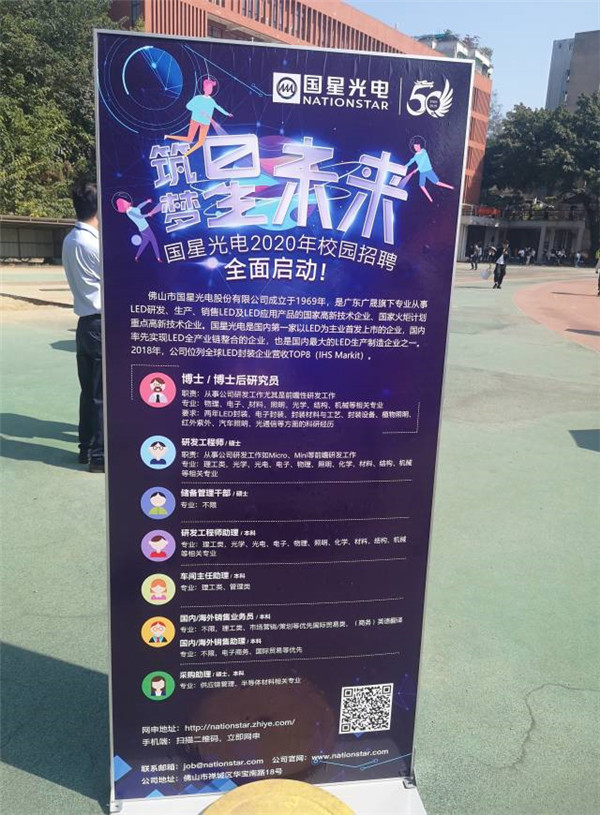 作为国有骨干企业广晟公司控股的上市公司——国星光电,亮相活动专场,提供200多个面向博士、硕士、本科毕业生的就业岗位,涵盖理工类、光学、光电、电子、物理、照明、化学、材料、结构机械、管理类、市场营销、电子商务、国际贸易等专业需求,吸引了现场众多应届精英毕业生报名,为公司人才队伍建设构筑了坚实的基石。